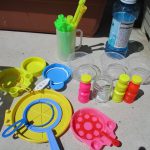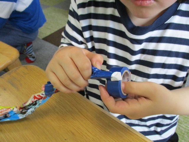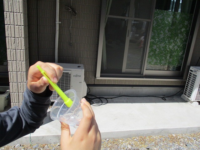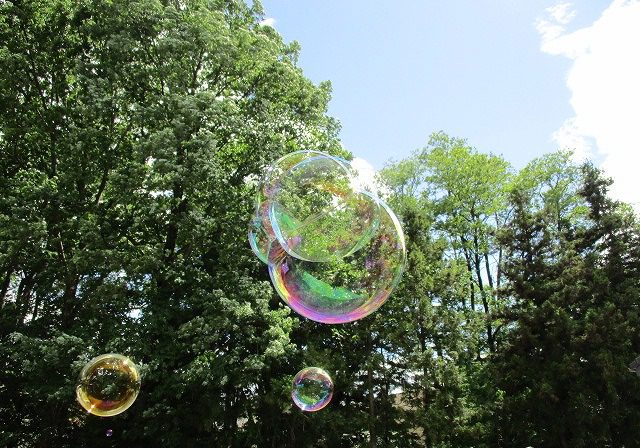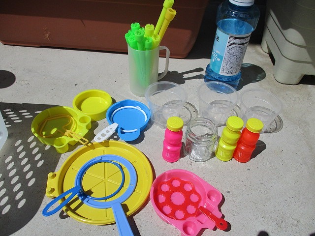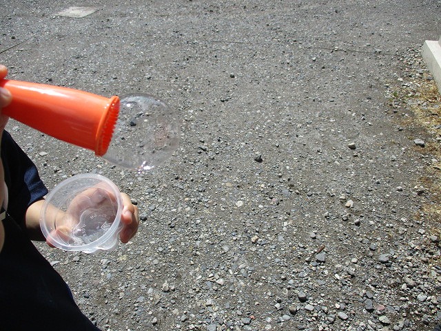 晴れ間には外でしゃぼん玉を飛ばしてみました。