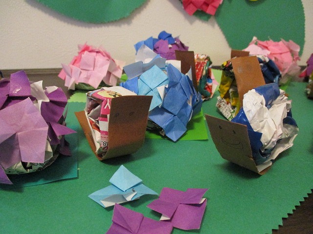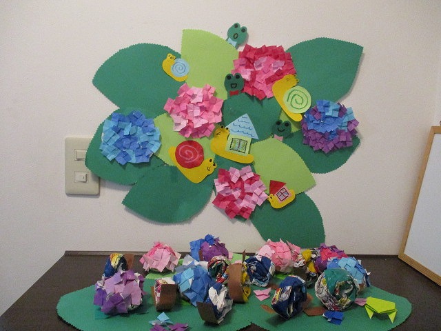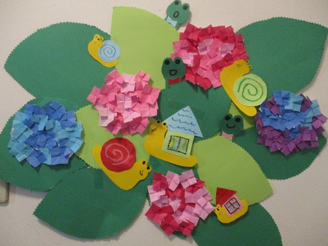 水のキラキラ感、紫陽花の小花、雨が降る様子……この季節ならではの製作やおやつ作りの子供たちの様子をお知らせいたします(*^-^*)