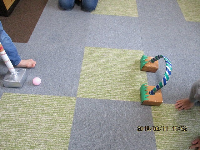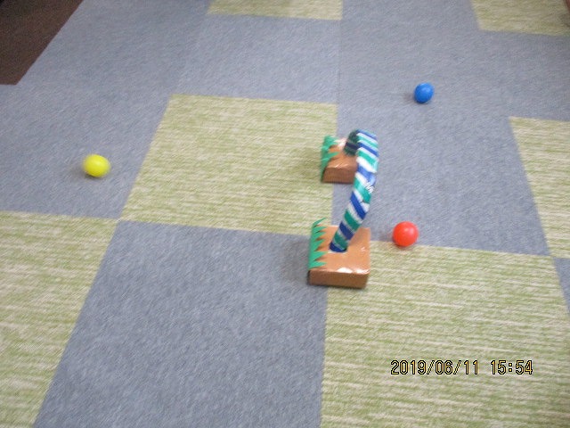 室内ゲームでは指導員の手作りゲートボールに興味深々、大変盛り上がりました(^^♪