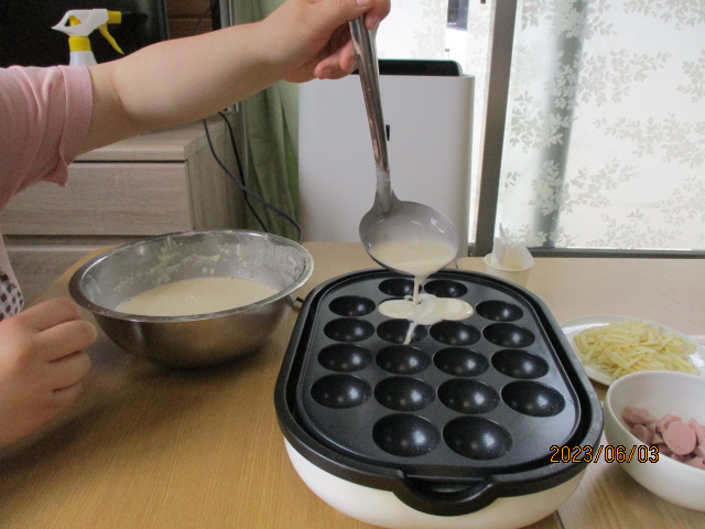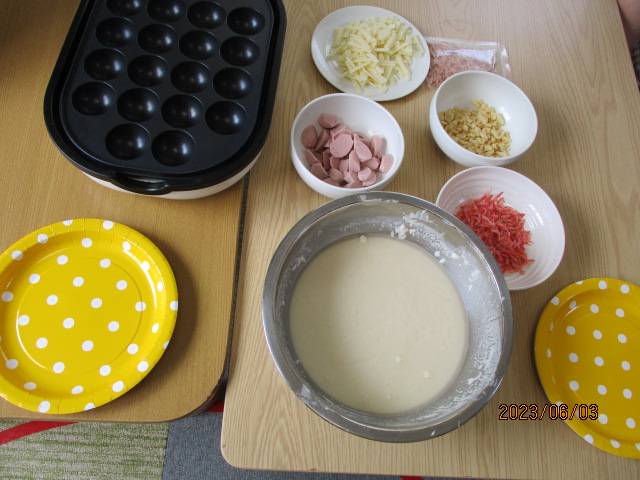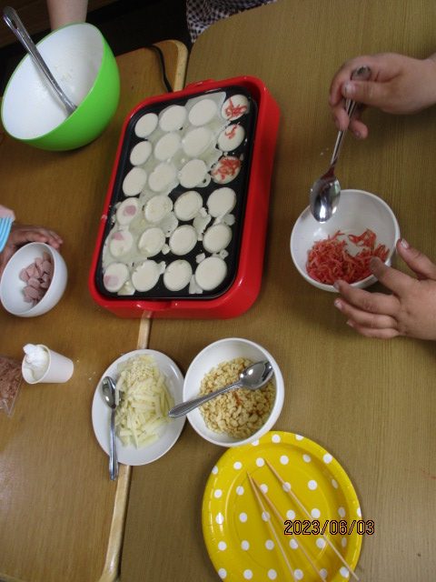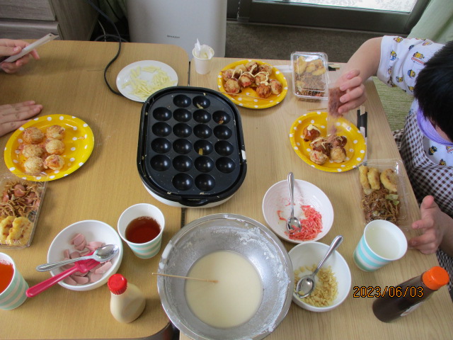 昼食を兼ね、たこ焼きパーティーを行いました(*^^*)