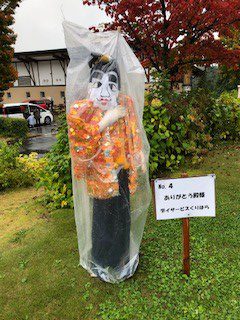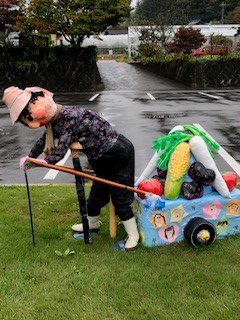 毎年行われる案山子祭りです。力作が並んでいましたが、あいにくの小雨模様でゆっくりと見学してくる事はできませんでしたが、久しぶりの外出で朝からテンション高めの子供たちでした (*^▽^*)