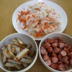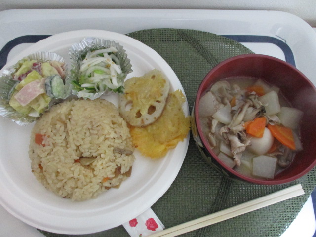 県民の日に朝から利用だった子供たちと、昼食作り。。秋にちなんだ炊き込みご飯と🍄の豚汁他。どれも美味しく出来ましたが、特にレンコンのチーズ焼きは飛ぶように無くなりました。🍷に合うつまみにもなる様ですよ(#^.^#)
