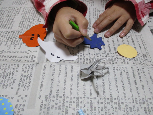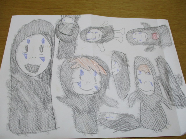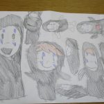 見学後心に残った作品を大きな紙に残した子供の作品です。カオナシが印象的だった様です(^^♪