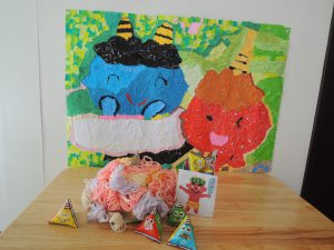 新聞紙をくるくる丸めて豆に見立てました。