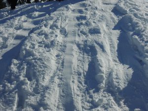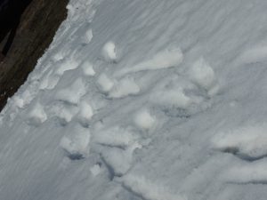 足跡一つない雪山も、だんだんと・・。