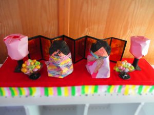 みんなで作ったお雛様を飾ってお祝いをしました?