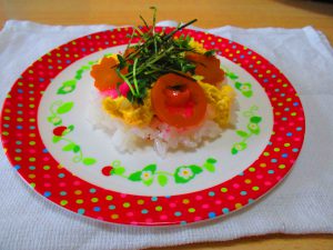 おやつレクレーションではちらし寿司を作りました。