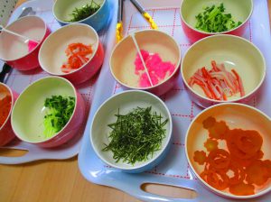 おやつレクレーションではちらし寿司を作りました。