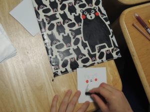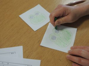 子どもたちが好きそうなキャラクターや絵を懸命に描く指導員。