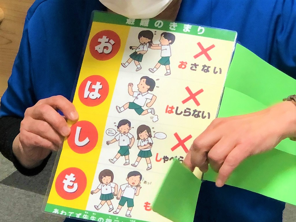 定期的に行っている避難訓練での一コマです。