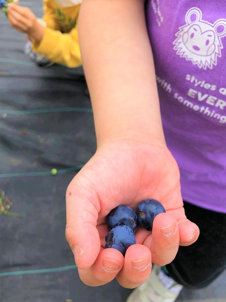 「ブルーベリーできたよ。取りにおいで。」との嬉しいお誘いが!!