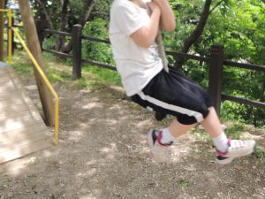 望郷の湯のアスレチックでは、思う存分体を動かしてきました。