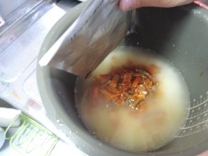尾瀬児童館へ行く前に、おやつの時間に食べる炊き込みご飯を仕込んでおきましょう!