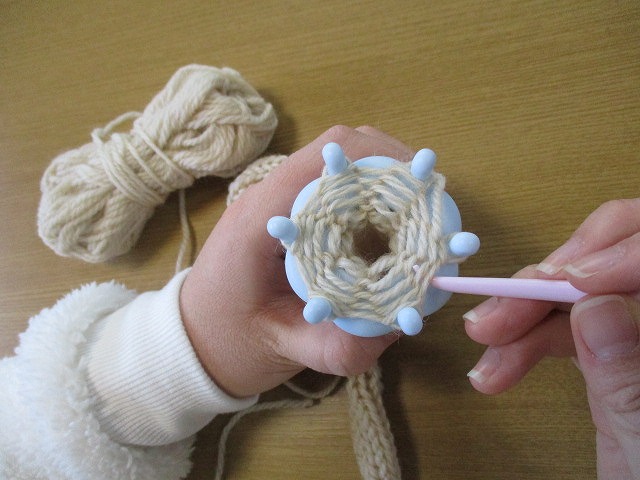 ぬまたでは静かなブームとなっている、リリアン編みです。編み上げる過程と出来上がりの達成感に皆はまっています。