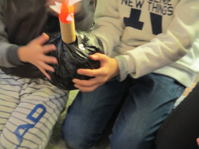 切ったり、貼ったり、縛ったり、丸めたりと色んな工程がありましたが、楽しく作り上げる事ができました。