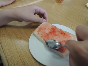 ご家庭や学校で食パンにジャムを塗ることがありますね。