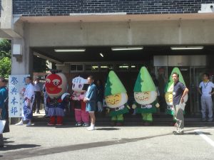 たくさんの人やご当地キャラに出迎えられみんな興奮気味。 (≧▽≦) にぎやかー