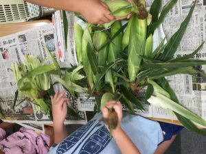 次はトウモロコシ農場を経営されている宮田様のご厚意で収穫体験をさせていただきました?