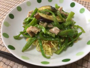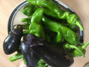 まずはくろーばーの庭で作ったナスと万願寺唐辛子(味はピーマン 辛くありません。)を使って