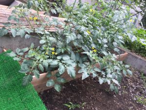 みんなで植えたミニトマトの実が少しづつ膨らんできました。