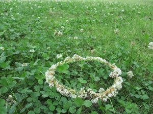 活発に遊ぶ男の子と花冠を作って遊ぶ女の子