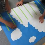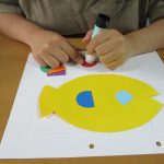 夏休み前に折り紙でヒマワリをたくさん折ってもらい