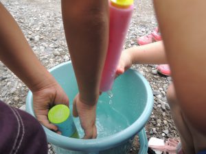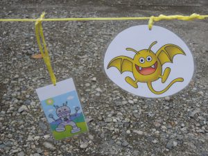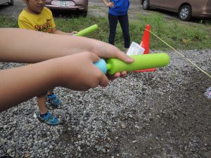 宇宙人やお化けの的に向かって「やっつけろ~。」と一斉発射~(^^♪