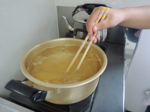 シソ入りを食べられたことに、保護者の方々も驚き\(◎o◎)/!
