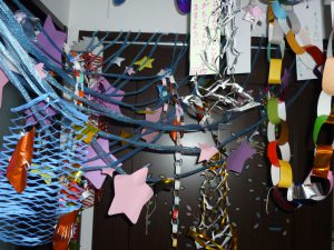 七夕会では前の日まで七夕飾りをたくさん作って飾りました。願い事もたくさんしましたよ。七夕ケーキはいつものように利用者様パクパク食べてくれました。一生懸命綺麗なケーキを作ったのですが楽しんでくださいましたか?