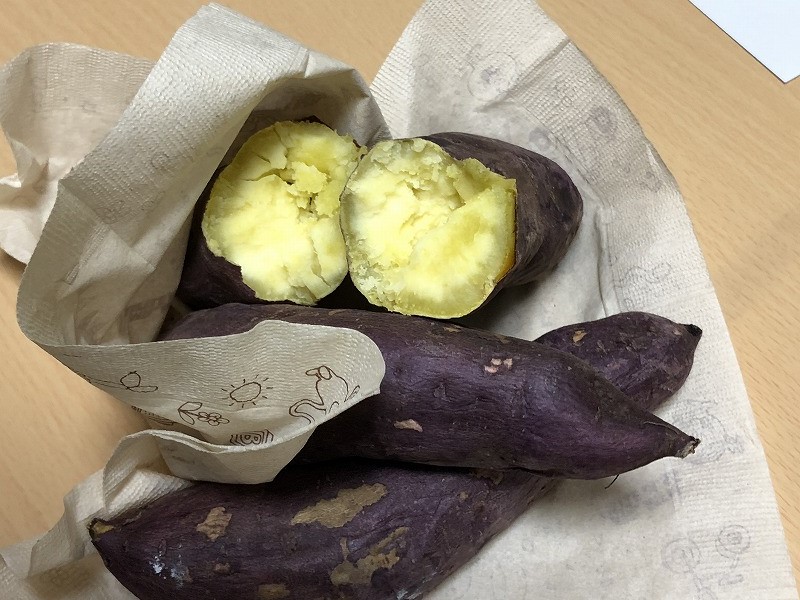 お土産にもらったサツマイモは焼き芋にしていただきました。