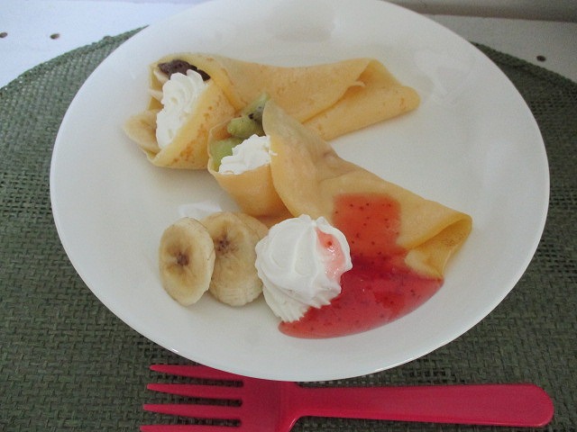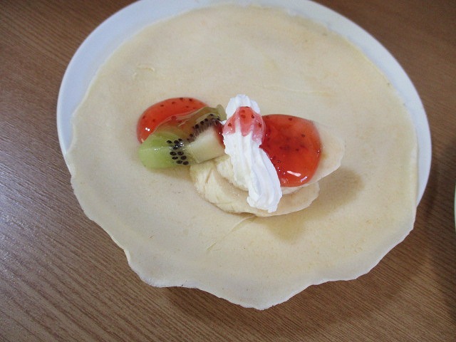 おやつレクではクレープ作りをしました。クレープの皮って意外に簡単に作れます(^^♪