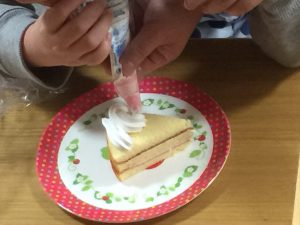 クリスマスケーキをみんなでデコレーションしていただきました。?♪??