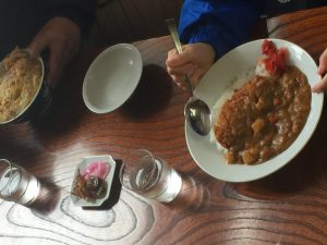 ご飯はスキー場内のロッジ「白がねハウス」でいただきました。