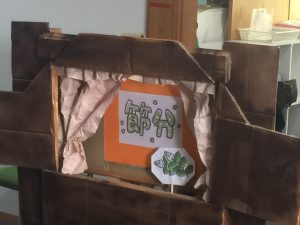 お寿司屋さんが準備して下さっている間に職員お手製のペープサートで