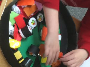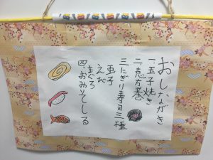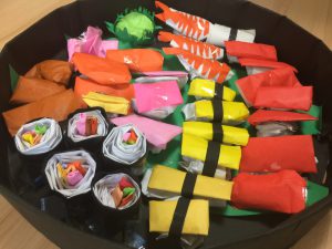 制作ではお寿司を折り紙で作りました。