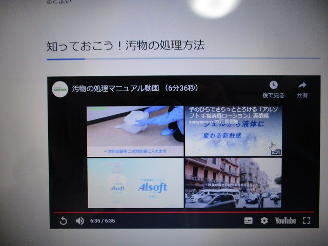 例年、冬には様々な感染症が流行ります。今年もぬまたでは、ノロウイルス感染症について動画を見ながら、勉強会を開きました。感染症は原因となる病原体や感染経路が異なる為、予防法はそれぞれ異なりますが、基本的な予防方法は同じです。