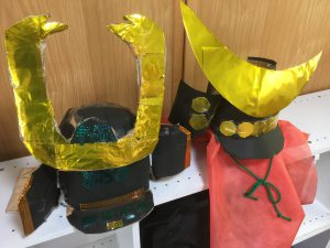 子供の日製作では兜を作りました。
