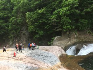 観山荘を後にした一行は、「吹割の滝」見学へ
