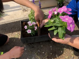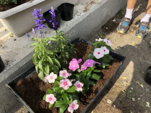 今年の花植えは「ペチュニア、日々草、ブルーサルビア」