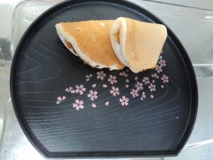 こちらは、桜餅に見立てたどら焼きを作りました?