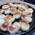 代表して2人に焼きまんじゅうを買ってきてもらい
