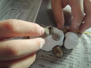 公園や庭で拾ったどんぐりを使い動物に(=^・^=)