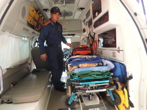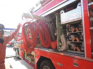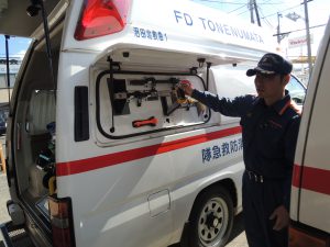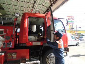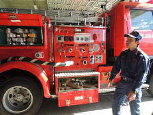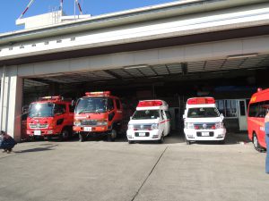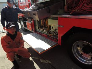 様々な車両があり、事故や災害の状況に合わせ出動することを丁寧に教えていただきました。