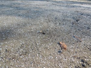 いつもの金網の上に、緑の防風ネットが張ってあり、