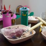 豆まきの後はもちろんおやつ。ブルーベリーソースをたっぷり塗ったロールサンドを召し上がっていただきました。鬼さんたちにも気を遣い、一緒にテーブルへご招待。見ているだけにしていただきましたけどね・・。