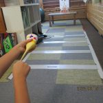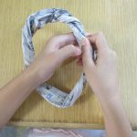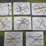 お花型❁の周りに穴をあけておき、そこに毛糸を通してもらいました。下から上、上から下という通し方に慣れるまで少し時間がかかり、仕上がるまでに1時間程度かかった子もいました。全部通し終えたあとは、子どもたちの表情に達成感にあふれていました。作品を並べて「頑張ったね~」「きれいだね~」と、眺めながらみんなで喜びました(^^♪