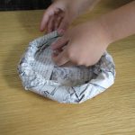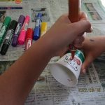 紙コップと風船を使い、事前に準備しておいたものに好きな絵を描いて仕上げてもらい、球は新聞紙を丸めたものを使いました。離れたところにおばけのイラストを貼って、それをねらい飛ばして遊びました。風船を引っ張る力加減が少し難しそうでしたが、みんな夢中になって楽しんでいました👻