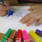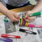 あらかじめ、職員が何種類か型を作っておき、それぞれ好きな型を選んでもらいました。子どもたちのスゴイところは、‟何を描いたらいいかなぁ”と迷わず描き始める事が出来るところです。かわいいプラ板が作れてみんな喜んでくれました!(^^)!