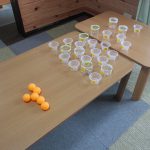 今年は、例年のような大きな取り組みは出来なかったのですが、左から『テーブルカーリング』『紙コップタワー』『カップインゲーム』とゲームを3つ準備し、子どもたちに楽しんでもらいました。中でもカップインゲームは人気で、難しいからこそ燃えるのか、何度も挑戦している姿がありました。沢山楽しんだ後、点数が一番多かった子から好きな景品を選べたり、賞状をもらってとても喜んでもらえたようです🌻