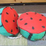 職員が張り子で作った手作りのすいかと、すいかを叩く棒は障子紙の芯を利用しました。1人ずつ目隠しをして本格的にチャレンジしました‼「右!もっと左・・・もっと前!」などみんなの声援を受けながら頑張ってすいかに向かいました(*^^)v 1人2回ずつチャレンジして、失敗してもみんなで笑い、最後に成功した時は拍手して喜びました‼みんなで楽しさや嬉しさを共有することが出来て良かったなぁと思いました。おやつにはスイカバーを食べたのですが、「この種、食べられるの?」という可愛いつぶやきにとっても癒されました✨